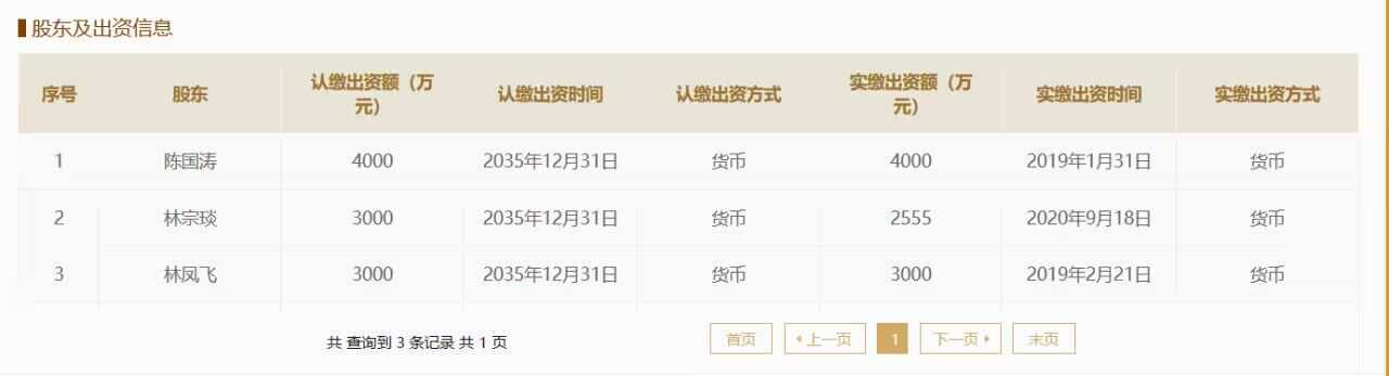 内斗:从暗流涌动到公告对垒国家企业信用信息公示系统显示,新生集团成立于2016年3月25日,法定代表人为林凤飞,公司的另外两个股东分别为陈国涛和林宗琰,三人各持公司股份30%、40%和30%,这一股权结构自2016年一直延续至今。