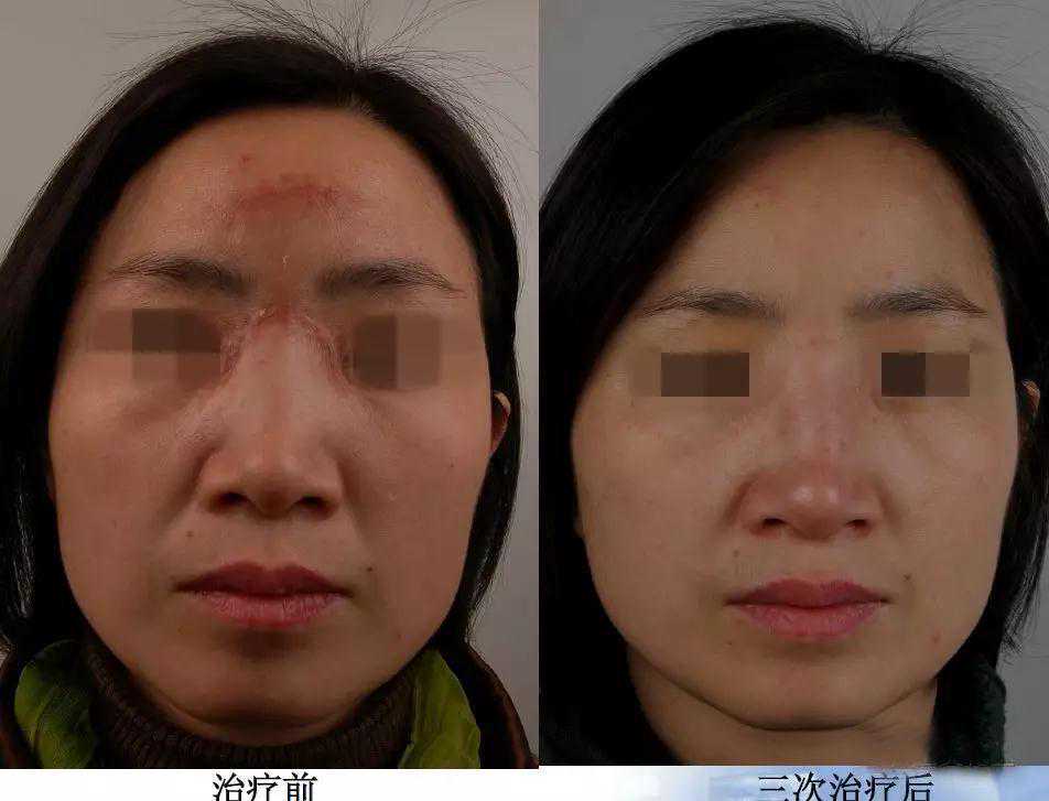 大约在手术刀口结疤二至三周后,疤痕开始增生,局部发红、发紫、变硬,并突出皮肤表面。早期应用点阵激光治疗可以抑制手术后瘢痕的增生及其导致的瘙痒、疼痛,一般治疗后1-2天瘙痒、疼痛即可改善。通常3个月治疗一次,4次为一疗程,坚持治疗一疗程以上,瘢痕的外观会有相当明显的改善。