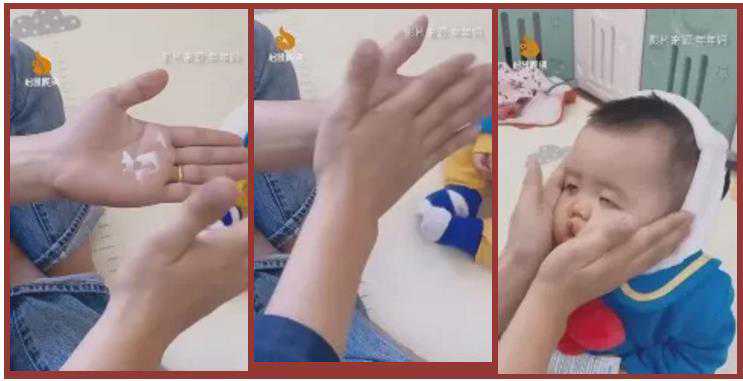 你们看,妈妈帮宝宝涂面霜时,细致又温柔,小宝宝享受的样子实在是太可爱了,整个画面温馨而快乐!但是下一秒!画风就转成介个样子!!