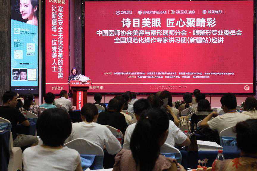 2017年7月,新疆整形协办“中国医师协会美容与整形医师分会·眼整形专业委员会全国规范化操作专家讲习团(新疆站)巡讲”,新疆整形诗目美眼技术领衔人余萍联合上海第二军医大学附属长征医院整形外科副主任医师陈刚、新疆整形技术院长王晓健现场手术示教,分享塑美经验、深入交流探讨。
