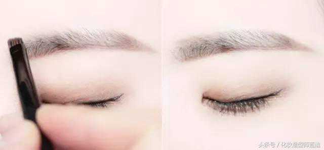 Step10:最后在眉骨下方用奶白色眼影提亮,让眉毛看起来更干净自然。