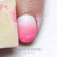 Step2:取一块白色的海绵,在海绵上依次涂上白色,西瓜粉红色,玫红色指甲油。