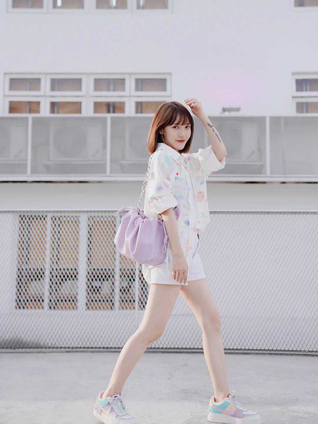 而且这件阔腿短裤超百搭的,觉得自己大腿不够细的姐妹可以尝试穿这种阔腿短裤,可以遮肉肉,还会反衬腿细~