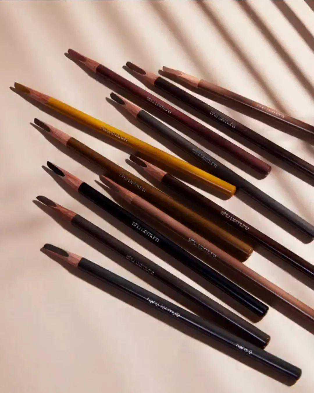 植村秀的砍刀眉笔,谁用谁叫好。别看它扁头偏粗,但也可以画出根根分明的眉毛。眉笔颜色选择特别多,可以满足不同发色需要。