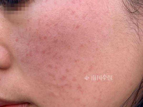更让冯女士难以接受的是,祛斑后脸上的斑点反而越来越显眼,还红肿、发炎。快两个月过去,红肿未消失,且脸部变得敏感。