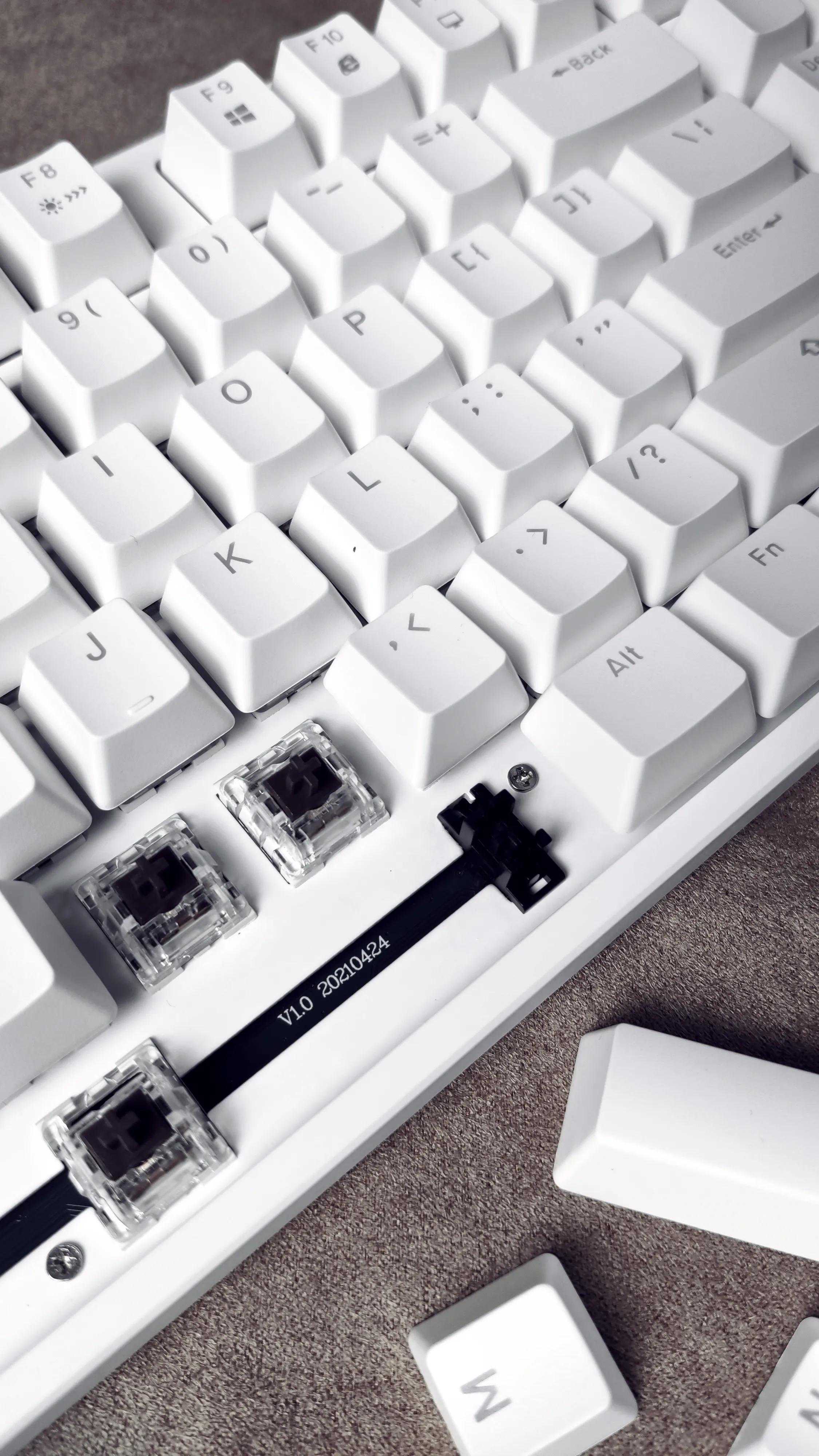 艾石头FE系列RGB热插拔机械键盘延续黑白纯色的配色方案,今天拿到的是白色,采用磁吸式的键盘盖,可以方便你的个性化创作,涂鸦改色,甚至是雕刻都可以,充分发挥你的想象,展现你的个性,如果你的设计配色被官方选中的话,还有机会出定制款,就像艾米洛的花旦娘一样大卖。可拆卸上盖与键盘面板牢靠固定,单手提拿上盖儿都不会影响稳定性(如果要拆卸上盖,需要先从一端下手,撬开缝隙后整个后盖可以轻松拿下),让键盘可以在悬浮和非悬浮设计两种形态之间变形。
