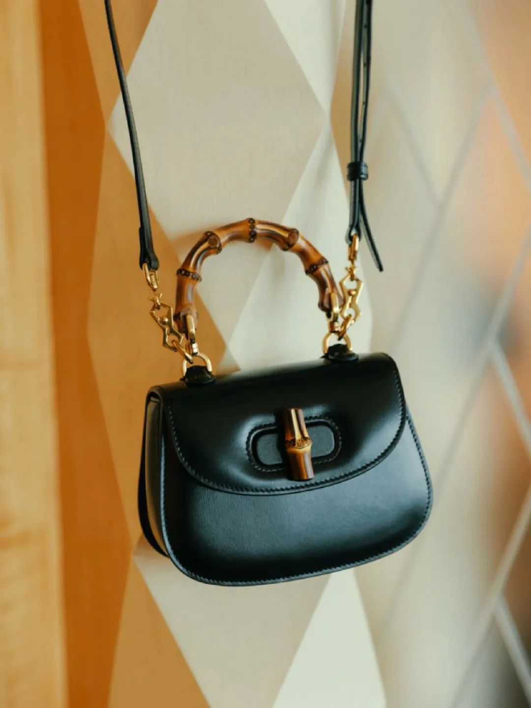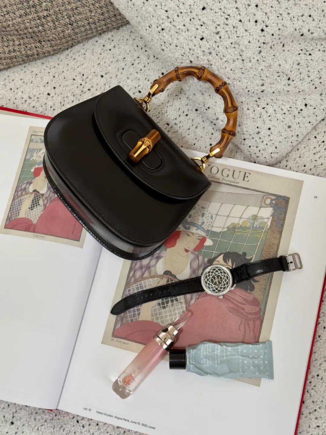 最近拿到了Gucci新复刻的迷你竹节包~实物特别惊艳,小巧的竹子手柄,低调的黑色皮就像暗夜含光,复古味特别浓。▼