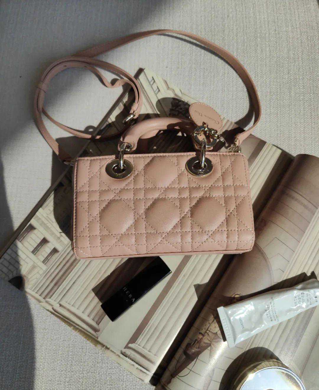 这只是micro超迷你款,小小一只粉嫩嫩的,看着整个少女心都要被融化了~粉的饱和度不是特别高,搭上哑光羊皮材质,并不会太甜腻,还挺耐看。▼