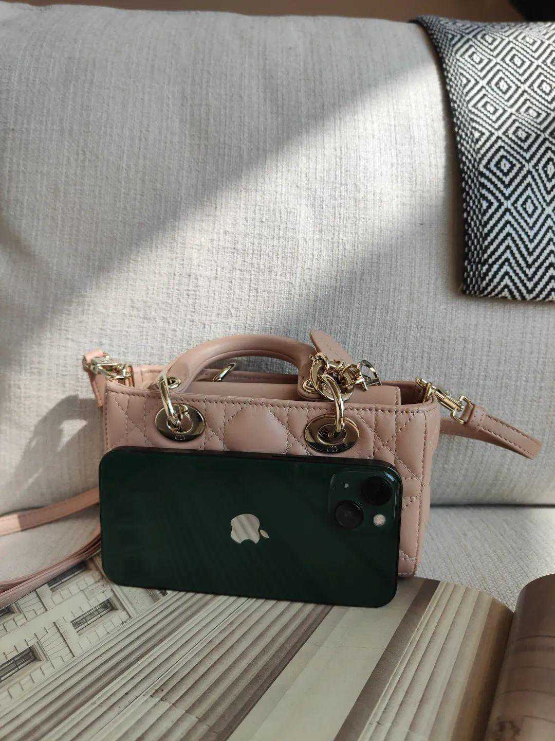 作为一只美丽小废包,我也就没指望能装多少东西,装装可爱就足够~不过因为包型宽长,它也还是能装些小零碎(尺寸16x9x5cm),比如iphone13、粉饼、口红啥的。▼