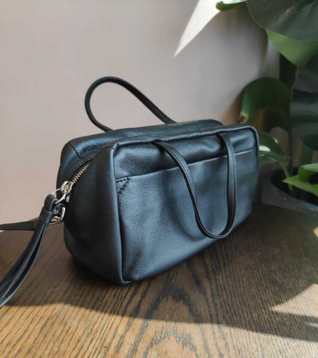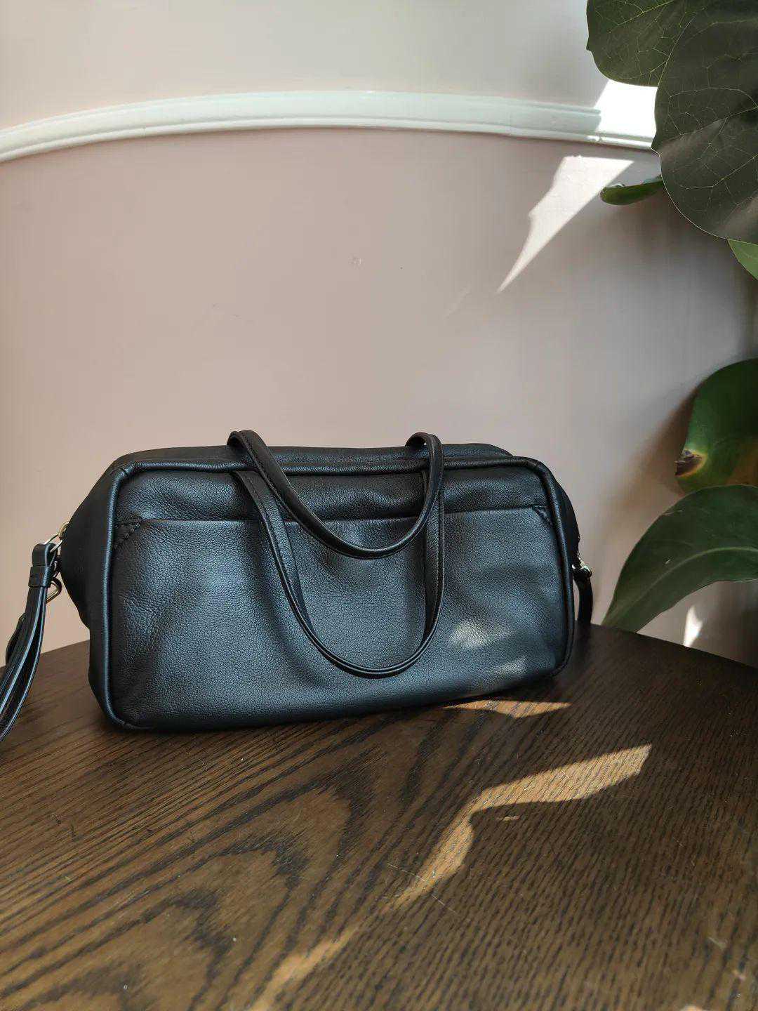 它是这两年很流行的波士顿包型,看着方方正正的但是超级软,整个包身都没什么logo,低调简单、也足够放松,背起来有点文艺。▼