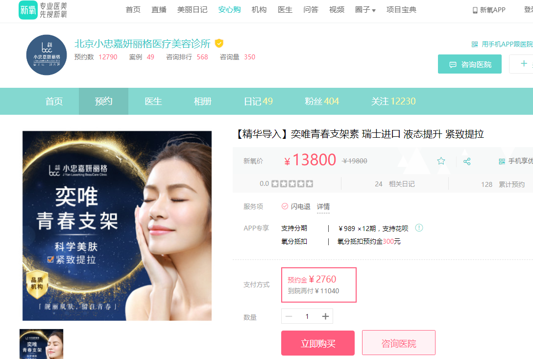 在新氧App的安心购栏目里,一款被推至1.38万元/次的医美产品成为了畅销品,那就是奕唯青春支架,号称瑞士进口。