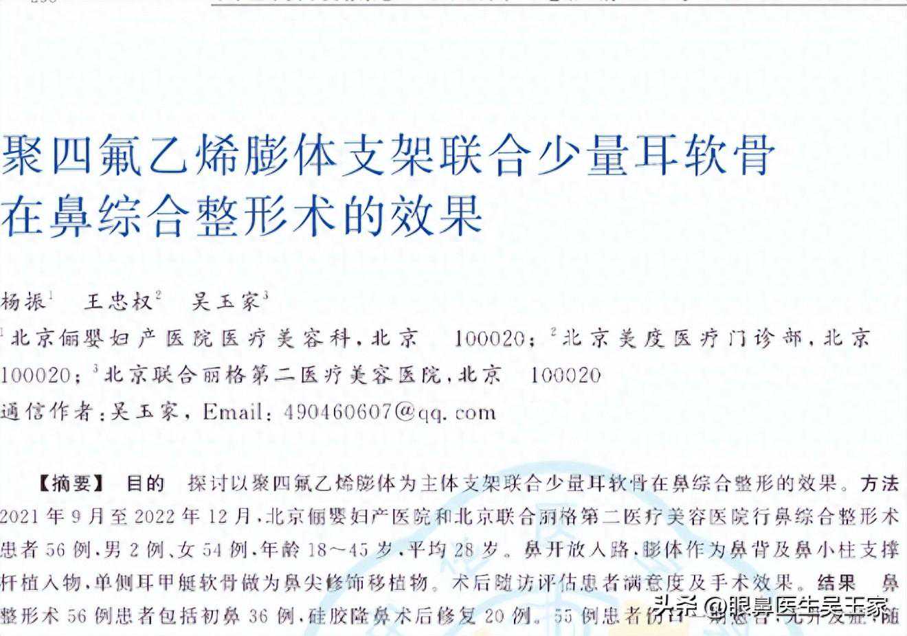 而且对于我来说,3月有着更深层的意义,吴氏简约鼻综合——聚四氟乙烯膨体支架联合少量耳软骨在鼻综合整形术,应用到临床当中,至今已成功塑美2000余简约鼻综合案例。并以《聚四氟乙烯膨体支架联合少量耳软骨在鼻综合整形术效果》在《中华医学》杂志成功发表!