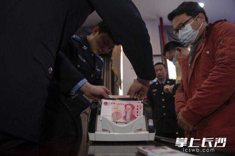 2024年1月25日,在长沙市公安局机关二院,公交治安分局举行“5·15”专案涉案财物发还大会。一名名曾经被骗的群众,欣喜地从民警接过现金,从一沓沓百元大钞到一元、五元钞票,分文不少。