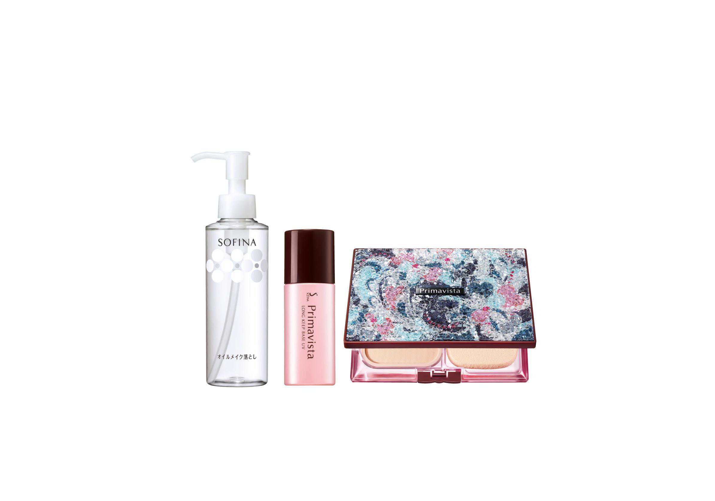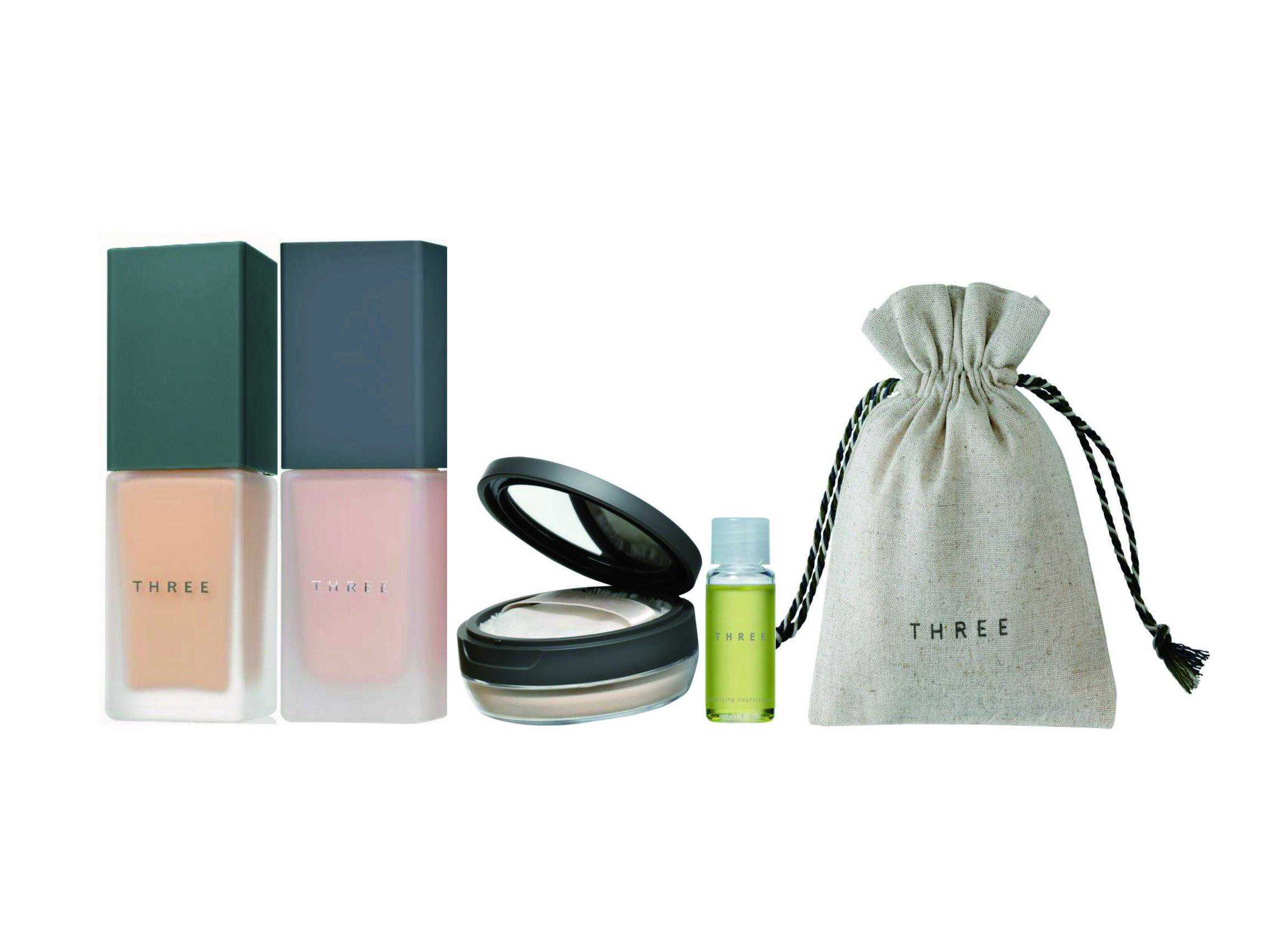 底妆套装,HKD790-1,025(价值HKD998-1,233)。为保持健康肤质,THREE以80%以上天然植物成分提炼成底妆系列产品,犹如为面部进行「第二层护肤」,展现肌肤的自然美。礼品中的人气亮点为内附镜子的凝光蜜粉,方便携带。