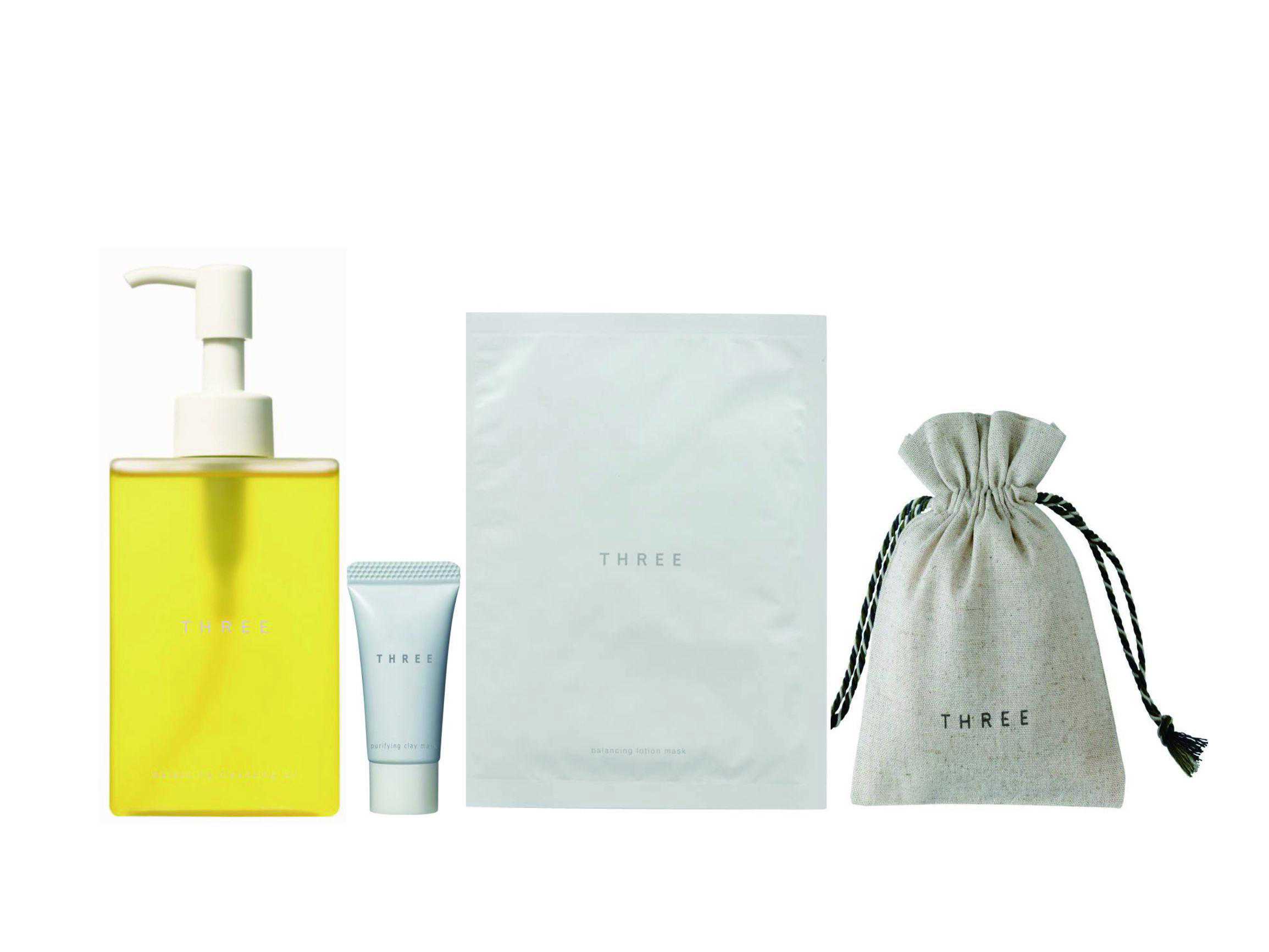 平衡洁肤油套装,HKD365(价值HKD504)。THREE皇牌产品BalancingCleansingOil以植物萃取的精油为主要成分,洁净力极强及香氛浓郁的平衡洁肤油,有效轻易溶解高防晒度及防水的彩妆品,亦能去除多余油脂及死皮,用后柔滑滋润。公认为「THREE」的入门推介。