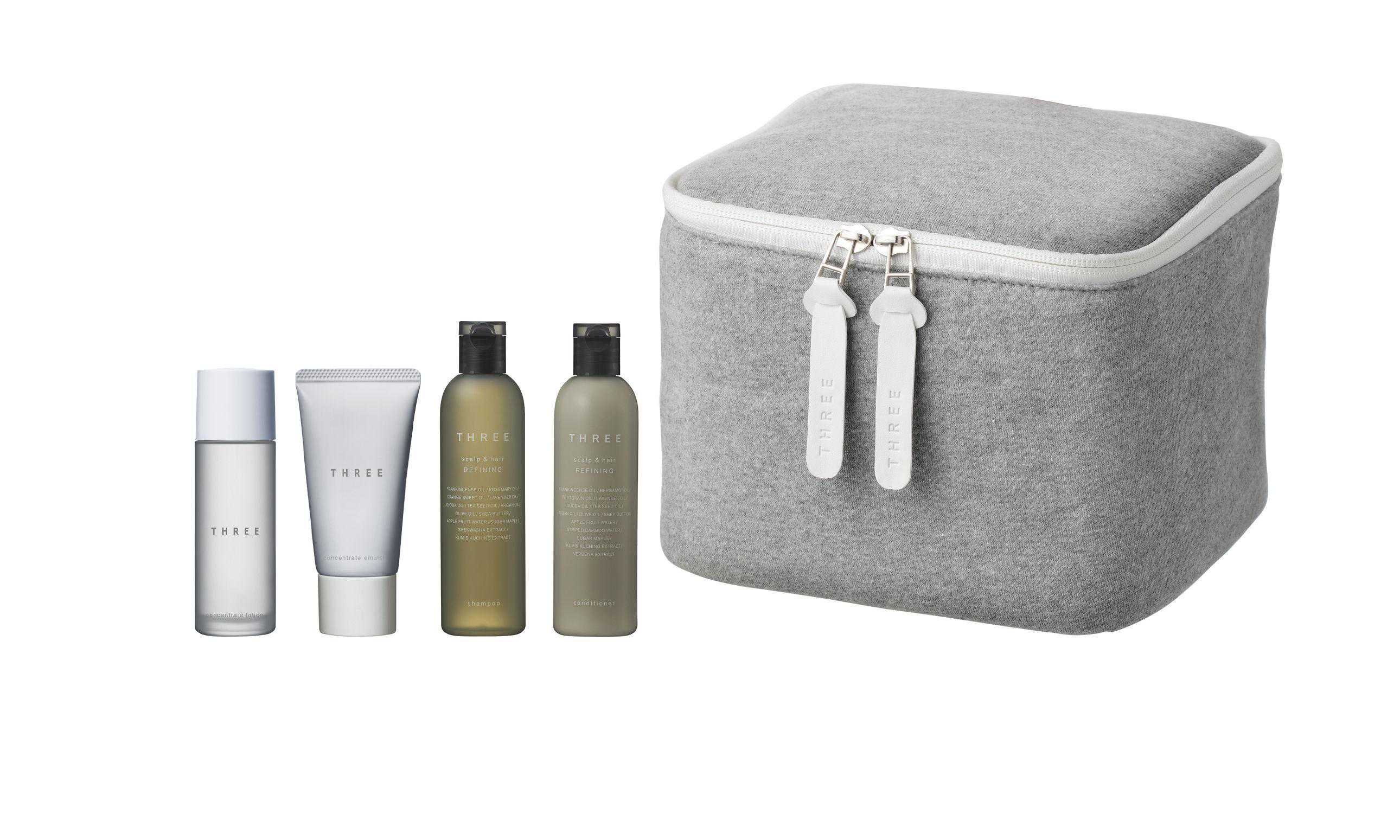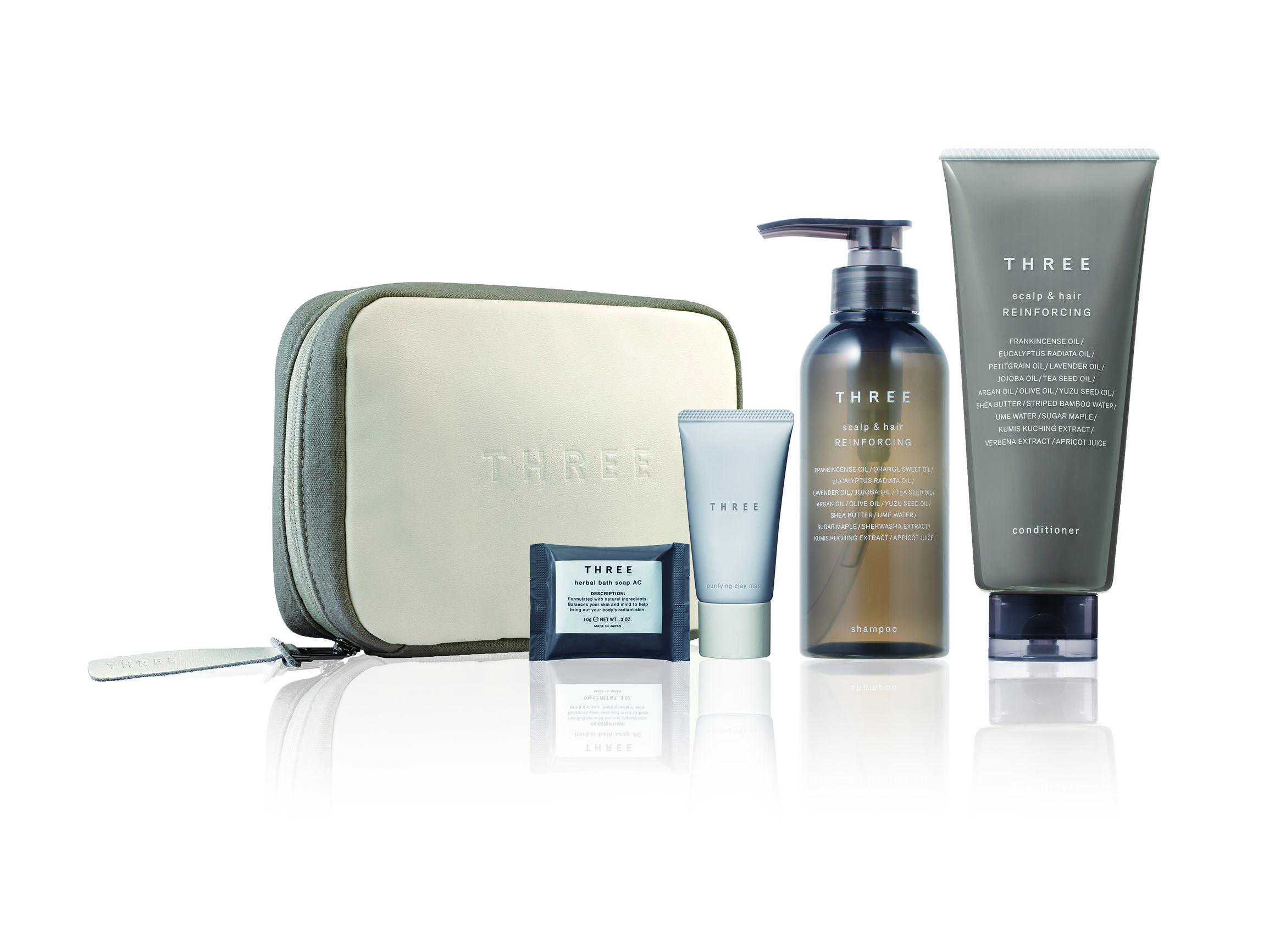 购物满HK$3,000,(最多可含2个套装),即可获赠主打抗衰老护肤功效的赋活系列2品及极致丝润美发修护2品旅行装,充分体验THREE的全方位护理概念。