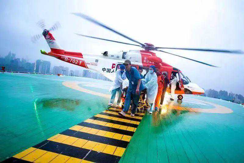 2019年6月20日,两名江苏南通的严重烧伤患者搭直升机转运至上海瑞金医院。这是该医院停机坪灯光系统第一次为航空医疗救援夜航打开,也是国内航空医疗救援首次在雨中两度起飞、一次连续救援两名危重患者接受跨省转运急救。借助瑞金医院航空急救平台,烧伤救治“空中-地面-海上”立体救援网络建立。