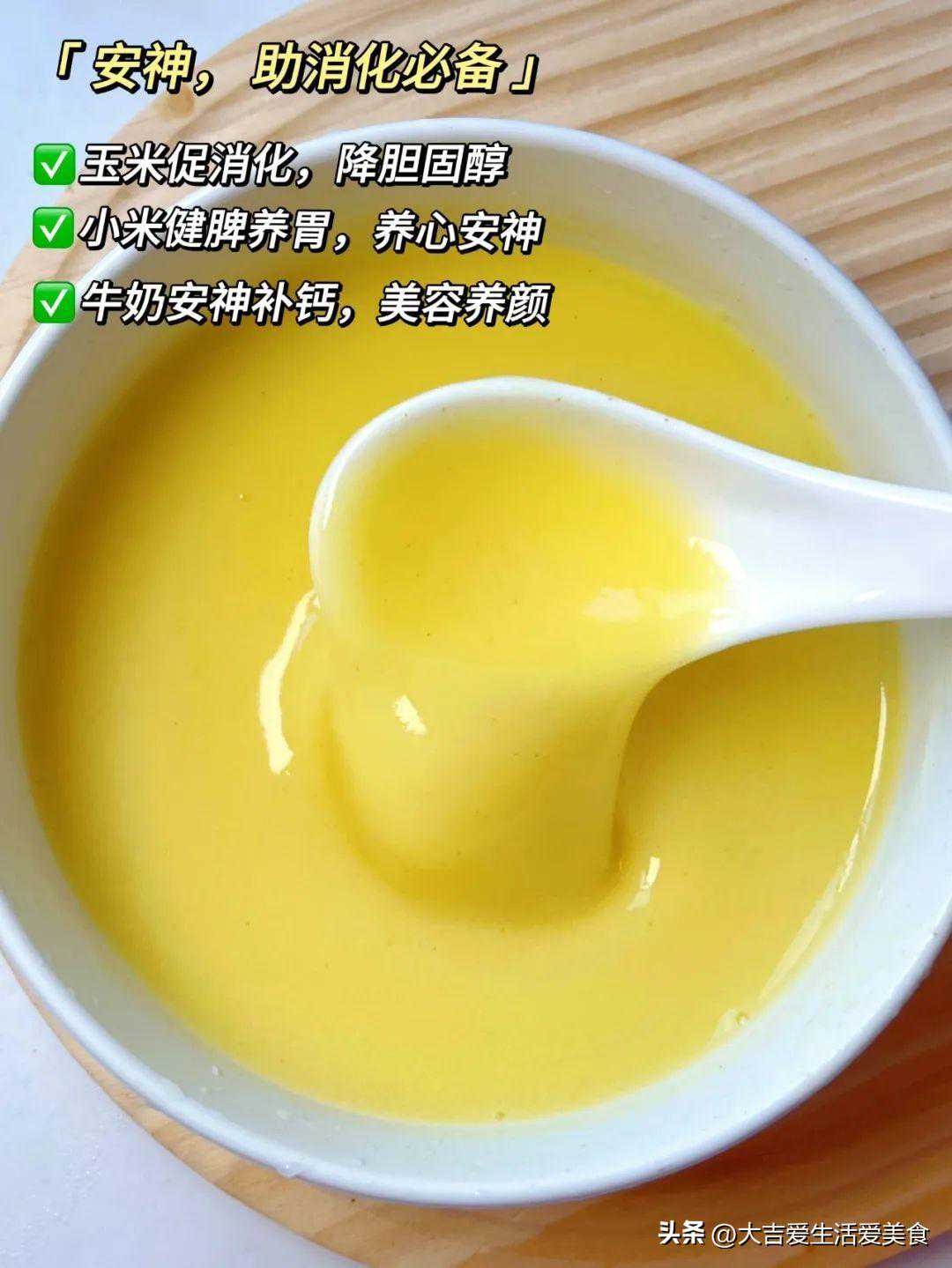 食材还是比较简单的,自己在家就可以做,玉米促消化,降胆固醇,小米和牛奶都能安神,不仅营养美味,还美容养颜,健脾胃,简单的食材一起搭配,就简简单单的养生,还就是那个味道,做法简单。